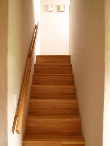 無垢タモ材のシンプル階段 2014/08/07 今日は前回ポストカードを飾って、さらにお気に入りの空間になった、ウチの階段をご紹介しようと思います。前記事 → 『お気に入りのポストカードを、インテリアにとりいれる』うちの階段は、1階玄関から2階リビングに繋がっています。一般的な幅1間の、踊り場付きの折 ... Read More