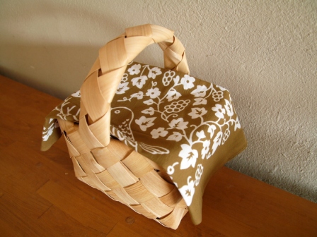 とりあえず、いつも目に付くダイニングのかごの目隠しにしています。